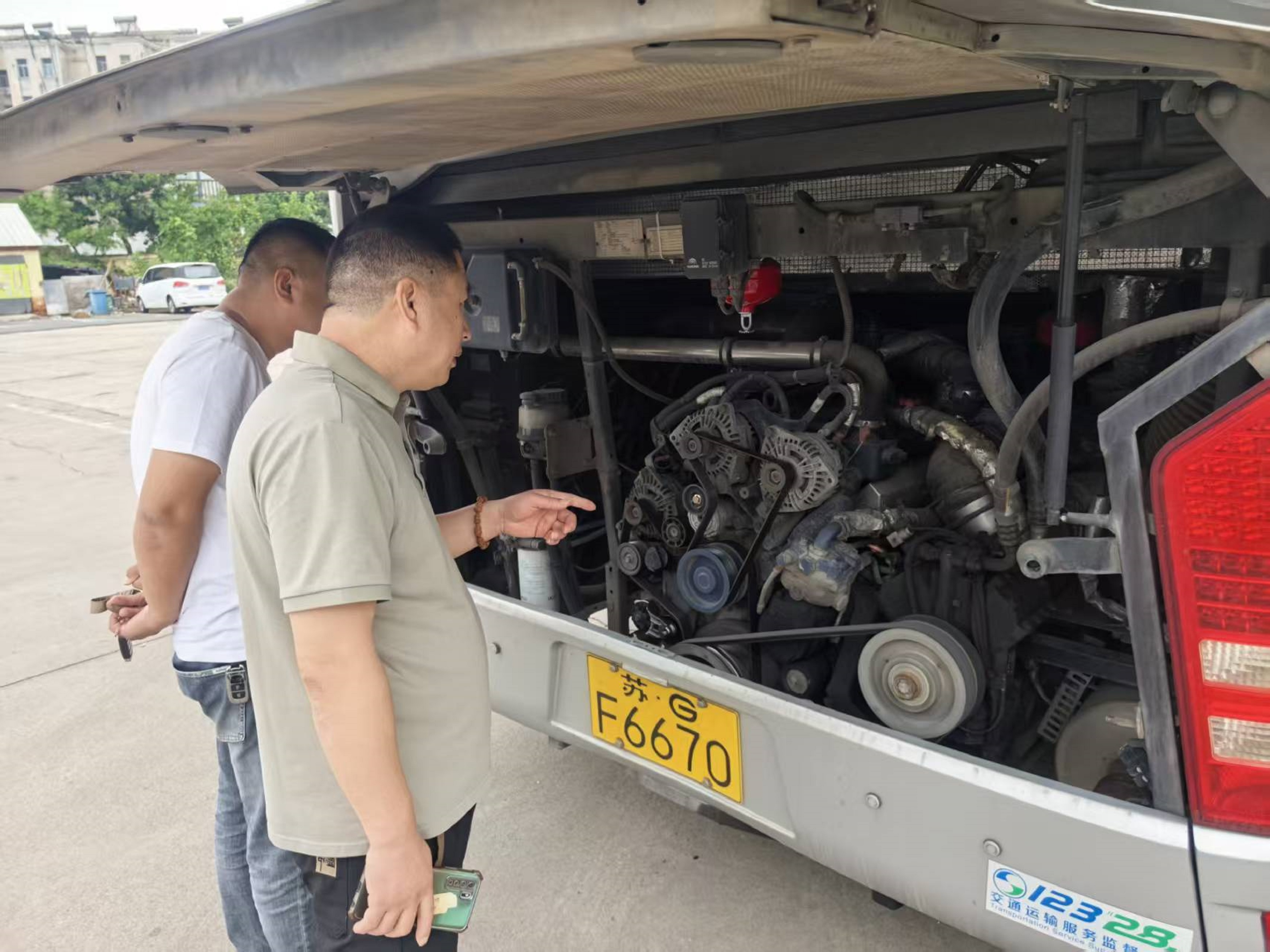此次專項檢查以車輛關鍵安全部件與應急設備為核心:一是應急保障設備方面,逐車檢查滅火器壓力值是否正常、是否在有效期內(nèi),安全帶是否齊全,安全錘是否配齊且位置固定,確保突發(fā)情況下能快速取用;二是車輛發(fā)動機,細致檢查發(fā)動機艙線路、油路是否存在老化破損,排查油污、漏電等隱患;三是車輛燈光系統(tǒng),對前照燈、轉(zhuǎn)向燈、剎車燈、霧燈等進行逐一測試,保障夜間及惡劣天氣下行車視野清晰;四是制動系統(tǒng),檢查輪胎及剎車片磨損程度、制動液液位及制動效果,杜絕制動失效風險。