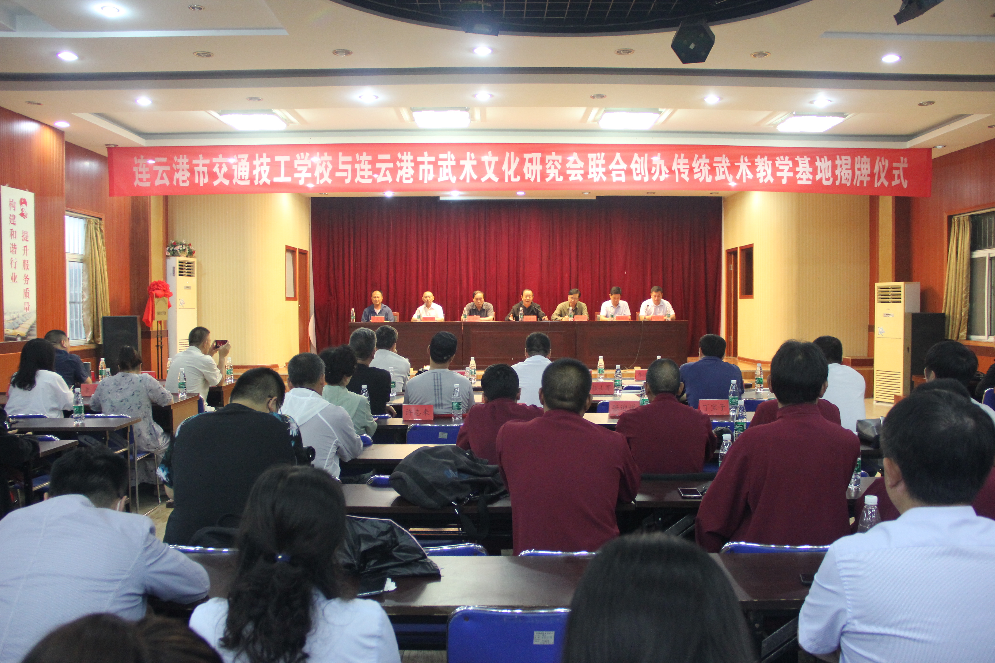2020年7月12日,連云港市交通技工學(xué)校與連云港市武術(shù)文化研究會(huì)聯(lián)合舉辦“傳統(tǒng)武術(shù)教學(xué)基地”揭牌儀式。原連云港市人大副主任、市武術(shù)文化研究會(huì)名譽(yù)主席謝建明,市交通控股集團(tuán)副總經(jīng)理李樹(shù)軍,市社科聯(lián)副主席周一云,市民政局社團(tuán)處處長(zhǎng)王愛(ài)民,交培公司黨委書(shū)記、總經(jīng)理?xiàng)罹S洲,市武術(shù)文化研究會(huì)會(huì)長(zhǎng)王慶喜,中國(guó)時(shí)代先鋒論壇秘書(shū)長(zhǎng)周德等領(lǐng)導(dǎo)出席儀式,交培公司員工參加儀式。儀式由楊維洲主持。