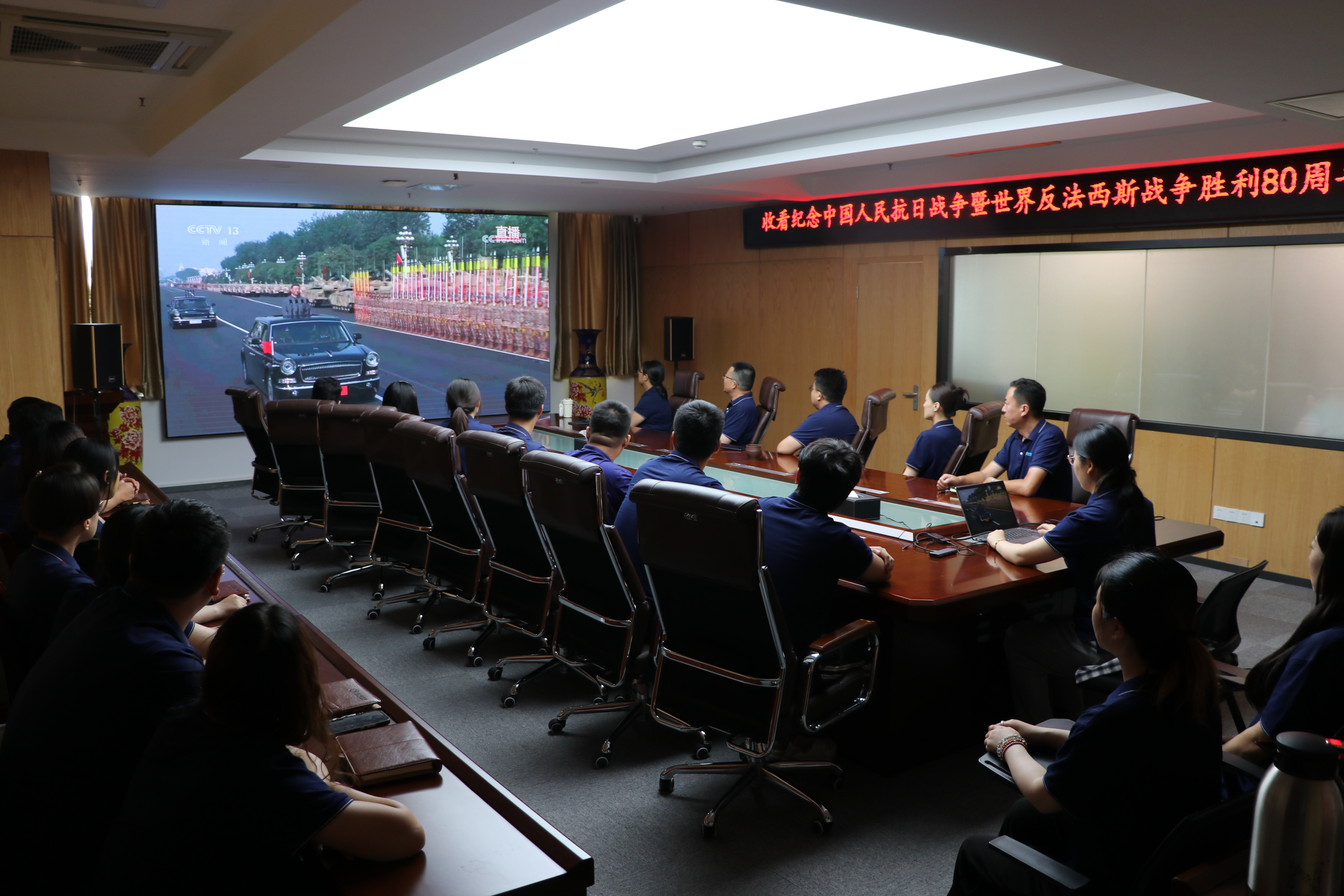 會議室內(nèi),員工齊聚一堂,全程觀看了紀(jì)念大會直播。當(dāng)中共中央總書記、國家主席、中央軍委主席習(xí)近平發(fā)表重要講話時,會場一片肅穆,大家全神貫注聆聽。習(xí)近平主席強(qiáng)調(diào):“中華民族偉大復(fù)興勢不可擋!人類和平與發(fā)展的崇高事業(yè)必將勝利!”這一莊嚴(yán)的歷史時刻,讓每位員工都感受到民族復(fù)興的偉大歷程與艱難曲折。