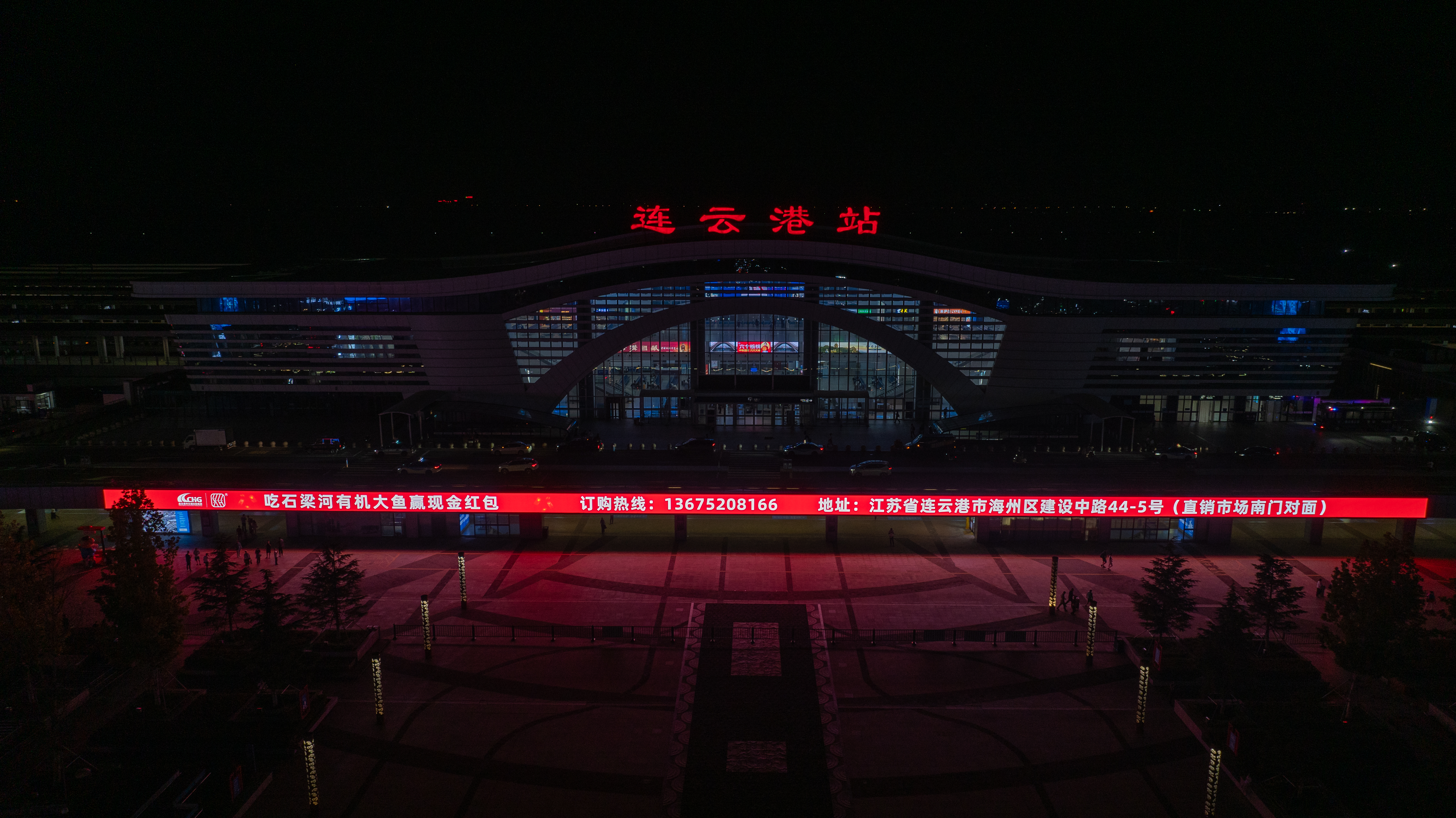 改造后,四塊大屏總顯示面積近800㎡。其中,高鐵站平臺主屏長達(dá)129.92米,如巨龍騰躍,成為華東地區(qū)最長的交通樞紐條形屏;南北廣場立柱屏四面環(huán)繞,實現(xiàn)360°品牌曝光,極大提升廣告?zhèn)鞑r值。四屏聯(lián)動,不僅構(gòu)建出震撼的視覺矩陣,更成為展示連云港“山海之城、絲路起點”城市形象的重要數(shù)字窗口。