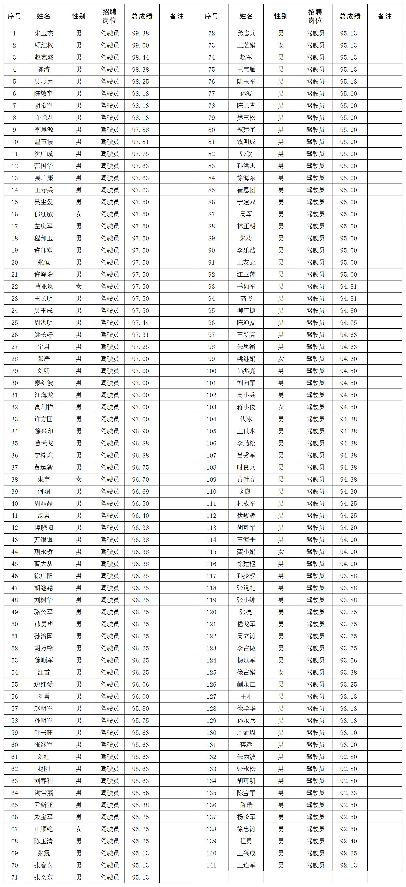 連云港市交通控股集團有限公司公交車駕駛員招聘錄用人員名單