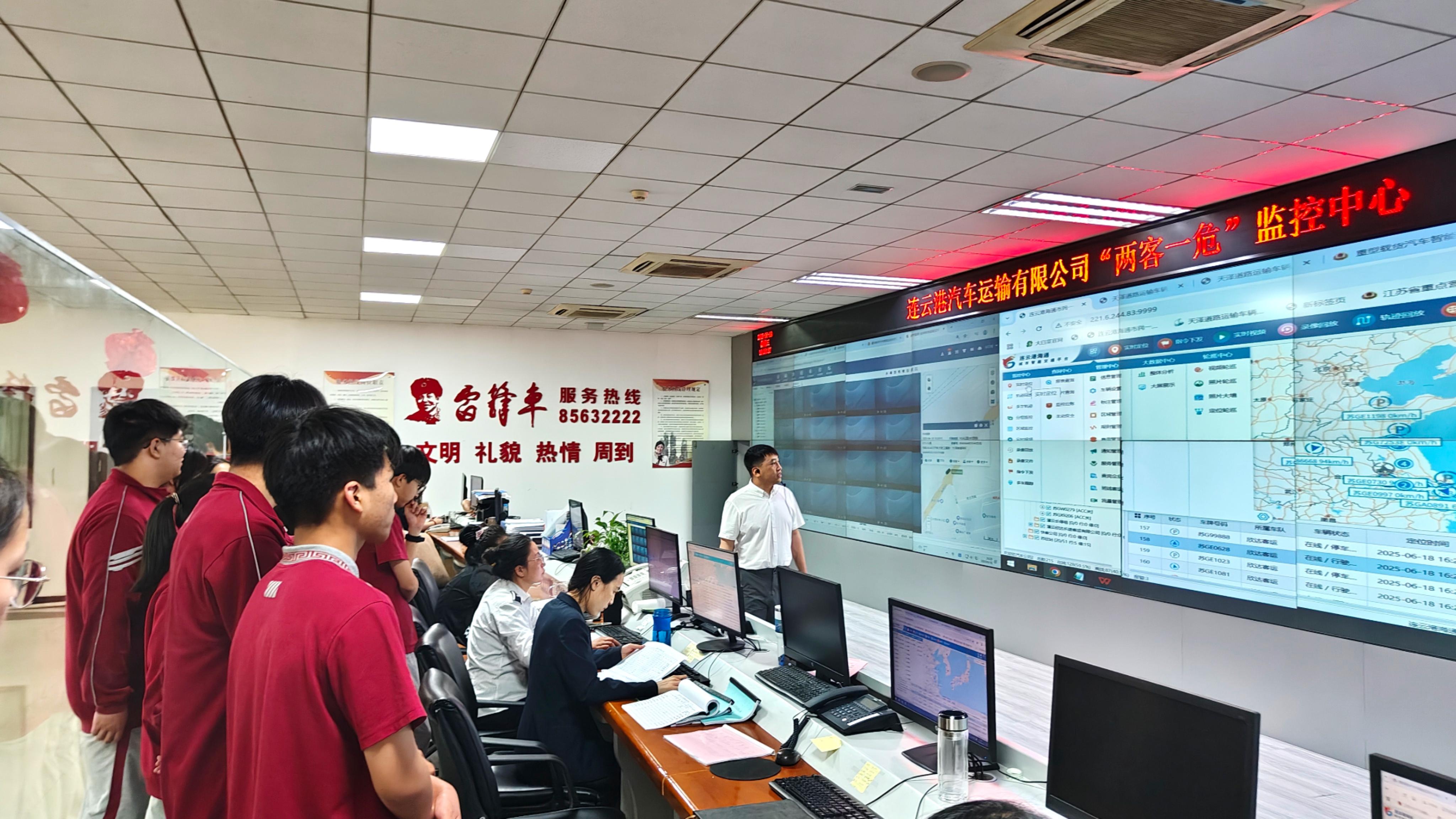 隨后,同學們走進汽車公司“兩客一危”監(jiān)控中心。巨幅電子屏幕上,危化品運輸車輛的實時軌跡、駕駛員狀態(tài)、車輛運行參數(shù)等數(shù)據(jù)動態(tài)更新,智能預警系統(tǒng)不斷閃爍提示。中心負責人向同學們展示了先進的監(jiān)控設備和智能化管理系統(tǒng),詳細介紹了如何通過實時監(jiān)控、數(shù)據(jù)分析等手段,對危化品運輸車輛進行全方位、全過程的動態(tài)監(jiān)管,確保運輸安全。同學們直觀地感受到了科技在危化品安全管理中的重要作用,也深刻認識到安全管理工作的嚴謹性和重要性。